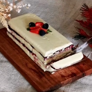 Uma sobremesa diferente, linda e deliciosa para deixar sua ceia de Natal muito mais charmosa e doce. Feita com uma ganache de chocolate branco, entremeada de biscoito champagne e geleia artesanal de frutas vermelhas